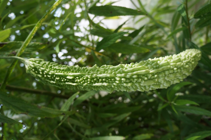 Eine schnell wachsende Heil-Pflanze. Alle Pflanzenteile haben eine stark blutzuckersenkende Wirkung . Bittergurke ist zudem eine in vielen asiatischen Ländern geschätzte Gemüsepflanze und gleichzeitig beliebtes Hausmittel bei diversen Beschwerden. Gegessen werden die unreifen, bitteren, aber doch angenehm schmeckenden Früchte. Es ist alles von dieser Rankpflanze verwendbar. Die Liste der Heilanwendungen ist lang: Blutzucker-, Cholesterin- und blutdrucksenkend, durchblutungsfördernd, entzündungshemmend, immunstärkend, Fettverdauung stimulierend, gegen Insektenstiche, Brandwunden, Arthritis, Hepatitis, antibiotisch, antiviral, tumorhemmend. Enthält u.a. ein insulinähnliches Peptid.