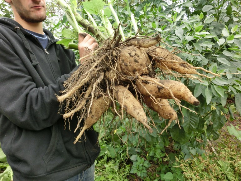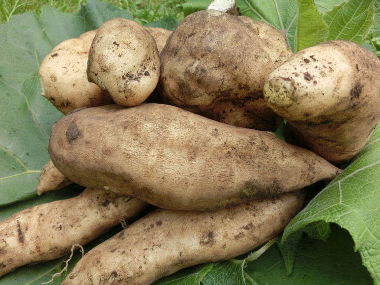 Gut zu Wissen Yaconstaude mit weißschaligen großen Wurzeln, Blätter werden sehr groß-breit ! Geschält können rohe Wurzelknollen sofort verspeist werden.Die Knollen dieser vitalen Staude schmecken süß und knackig und werden auch gekocht gegessen. Die Antroposophen unter den Kunden dürfte freuen, dass der essbare Teil kein verdickter Stängel sondern echte Wurzel ist! Wenn nach den ersten Frösten das Laub abstirbt, kann geerntet werden Ende Oktober. Wir bieten getopfte Pflanzen an, keine losen Knollen.