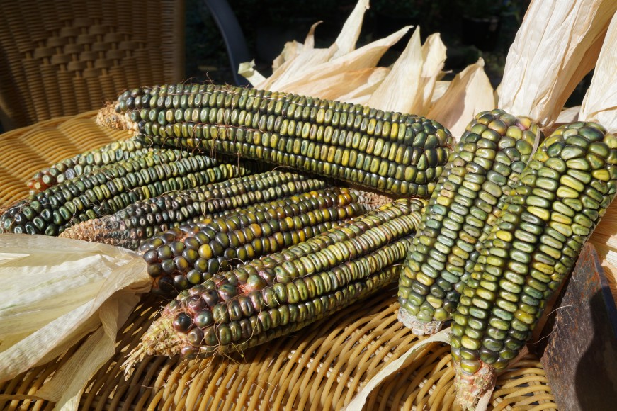 Sehr alte, grüne Gemüsemaissorte, die von den Zapotec Indianern Mexikos in der Provinz Oaxaca angebaut wurde.Die Kolben können jung als Gemüsemais gegessen werden. Sie sind sehr groß.